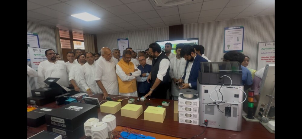 Ropar 08 July: In a historic move set to revolutionize the landscape of Indian agriculture, the Agritech Innovation Hub, powered by the Indian Institute of Technology (IIT) Ropar, was inaugurated today at the College of Technology, Sardar Vallabhbhai Patel University of Agriculture and Technology (SVPUAT), Meerut in presence of Shri Dharmendra Pradhan and Shri Jayant Chaudhary, Hon’ble Union Minister of Skill Development and Entrepreneurship, Shri Surya Pratap Shahi, Hon’ble Agriculture Minister, Government of Uttar Pradesh and Shri Anil kumar, Cabinet Minister (Science & Technology) Government of Uttar Pradesh. This event brought together technology and farming, aiming to empower farmers and build a brighter, more sustainable future for agriculture in India.