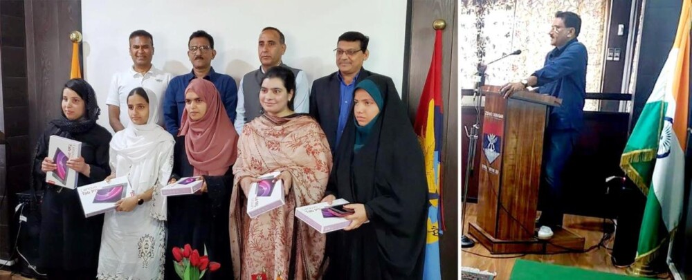 Srinagar, July 3: Atharva Foundation chairman Sunil Rane has undertaken a commendable initiative to donate iPads to the daughters of martyred soldiers from Jammu & Kashmir. This program was held at the Rajya Sainik Board Office in Srinagar.