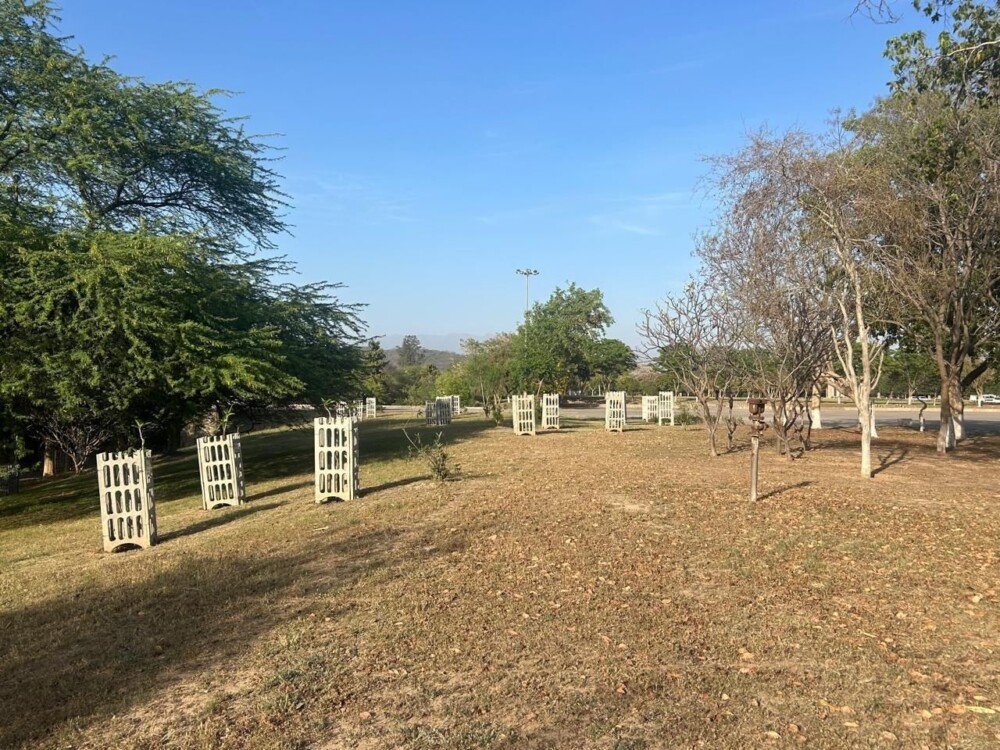 to safeguard the young saplings, fencing and tree guards have been installed, and the Horticulture Wing of the Engineering Department is supervising the implementation to ensure long-term sustainability.