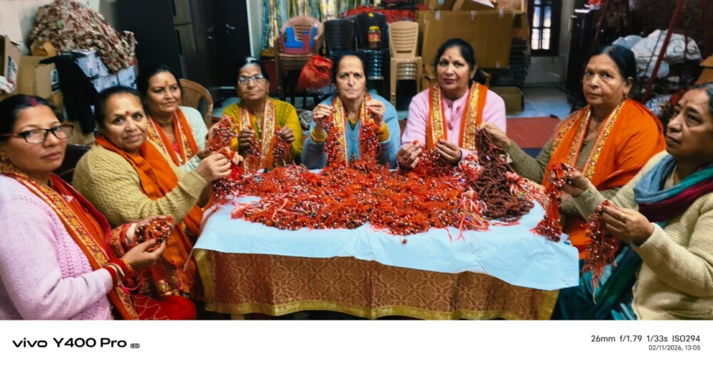 महाशिवरात्रि पर भक्तों के लिए श्री हनुमंत धाम में कमेटी की महिलाओं द्वारा 5000 रक्षासूत्र बनाए गए