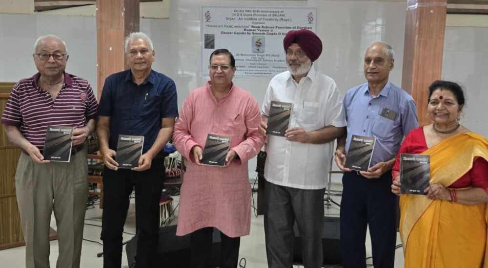 सृजन मंच ( रचनात्मकता का एक संस्थान ) के संस्थापक डा डी एस गुप्ता के 89 वें जन्मदिन के उपलक्ष्य में, सृजन द्वारा लेखक दर्शन कुमार वसन के ग़ज़ल संग्रह पुस्तक का विमोचन और सोमेश गुप्ता की टीम द्वारा ग़ज़ल गायिकी का आयोजन आज दिनांक 27 जुलाई 2025 को सुबह सैक्टर 40 के सामुदायिक केंद्र में आयोजित किया गया। कार्यक्रम में मुख्य अतिथि डा मनमोहनसिंह आई पी एस ( रीटायर्ड ) चेयरमैन चण्डीगढ़ साहित्य अकादमी और गैस्ट आफ हानर विनोद खन्ना, प्रधान रीडर एण्ड राइटर सोसायटी आफ इंडिया, चण्डीगढ़, संतोष गर्ग प्रधान राष्ट्रीय कवि संगम, और वीरेन्द्र रावत जी थे। सृजन के प्रधान सोमेश गुप्ता जी ने आए हुए मेहमानों का स्वागत किया। लेखक दर्शन कुमार वसन ने ग़ज़ल संग्रह सिसकती परछाइयां पर रौशनी डाली और लेखन यात्रा का वर्णन किया। विनोद खन्ना और संतोष गर्ग जी ने पुस्तक पर पत्र पढ़े । गुलशन भाटिया, एम एल अरोड़ा आशीष वसन ने ग़ज़लों को पढ़ा। सोमेश गुप्ता और गीता ने – हमें जीने नहीं देते हमें मरने नहीं देते ग़ज़ल, सोमेश गुप्ता और कुशिका गुप्ता ने – धड़कनों में अजीब दलदल है ग़ज़ल, सोमेश गुप्ता और नेहा राज वसन ने – बन बन कर यारो उजड़ेगी ज़ीस्त यहां यूं ही तड़पेगी और सोमेश गुप्ता और सुप्रिया ने – बहुत दिल से शरारत कर रहे हो ग़ज़ल प्रस्तुत की। गायकी कार्यक्रम के आख़िर में सोमेश गुप्ता की टीम ने टप्पे गाये । गिटार पर प्रतीक सेठ और तबला पर राजेश कुमार ने संगत की।