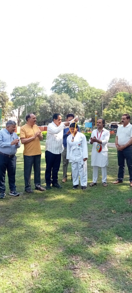 श्री अनूप सरीन जी ने बच्चों को संबोधित करते हुए कहा कि हर चैंपियन कभी ना कभी एक छोटा बच्चा था, जो सीख रहा था और गिर रहा था। जूडो और कराटे हमें सिखाते हैं — गिरकर फिर उठना। हारना गलत नहीं है, हार मानना गलत है। खुद पर भरोसा रखो, मेहनत करो, और कभी हार मत मानो। आप सब चैंपियन हो — बस खुद पर विश्वास रखो! उनके उज्ज्वल भविष्य की कामना की और उन्हें जीवन में अनुशासन, परिश्रम एवं संस्कारों के महत्व के बारे में प्रेरित किया।