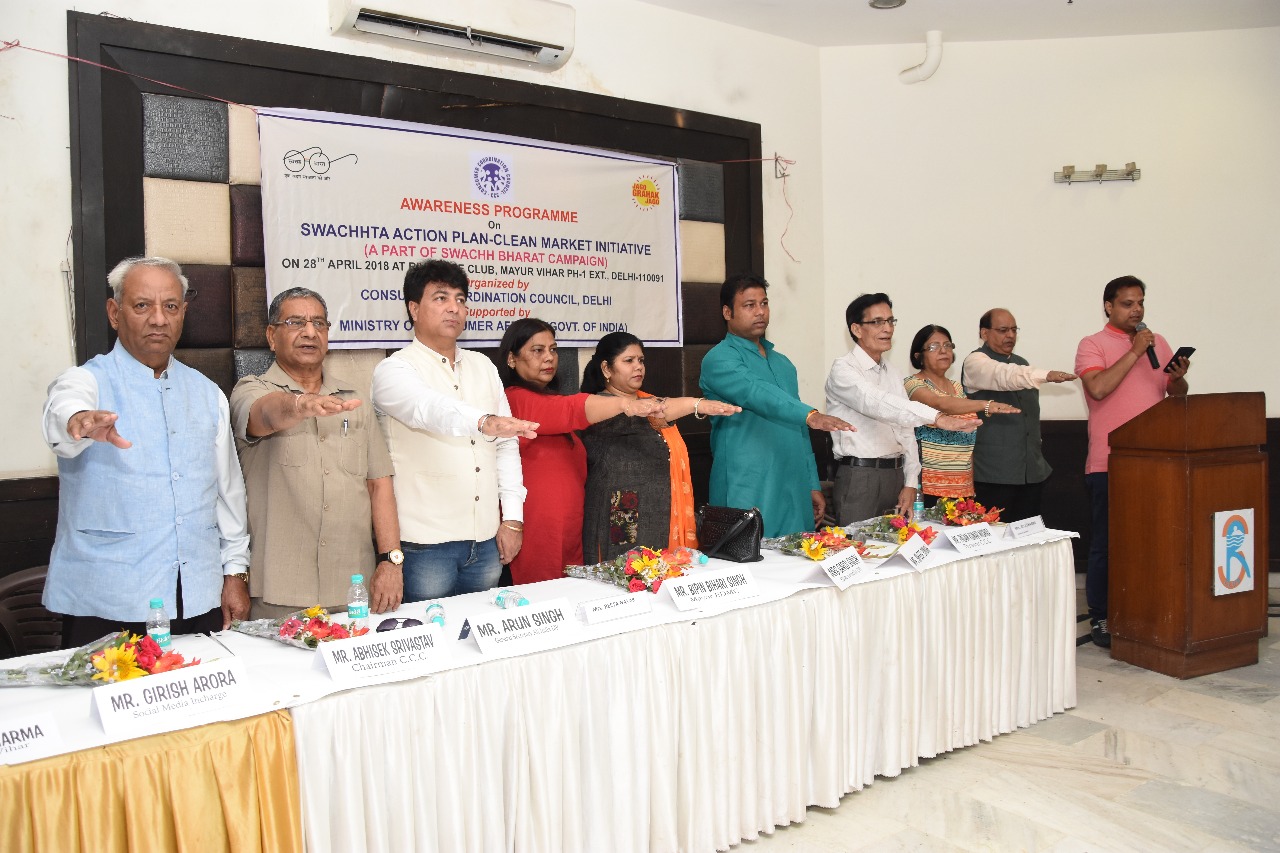 Awareness programme on swachhta action plan– clean markets initiative under swachh Bharat compaign launched by consumer coordination council and supported by ministry of Consumer affairs at riverside club Mayur Vihar Delhi.