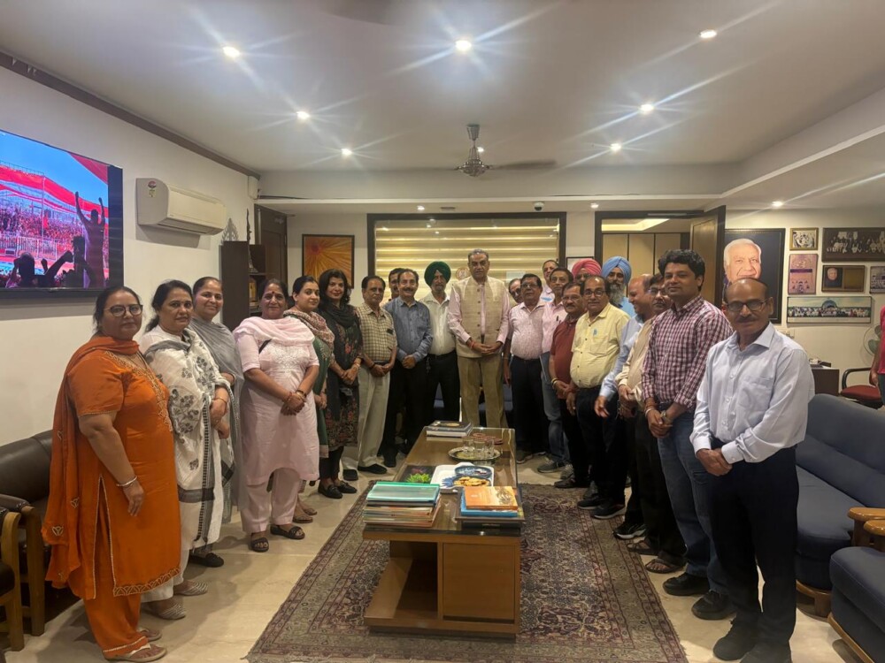The delegation was led by Ravinder Mohan Bhardwaj and included S. Kuldeep Singh Bhatt, Sourav Sharma, J.C. Juneja, Rajinder Arora, Prem Singla, Manjeet Kaur, Jyoti Mehta, Bharti Singla, Sushila Pathania, Anil Nijhawan, and Sargun Arora.