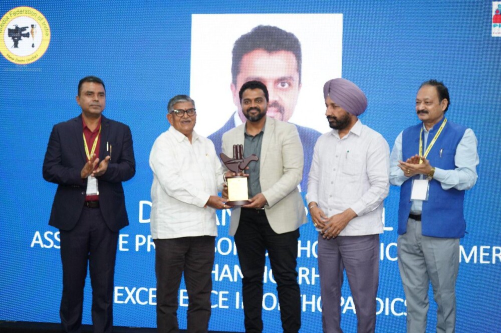 Dr. Sandeep Patel, Associate Professor in the Department of Orthopaedics at PGIMER, Chandigarh, was honoured with the ‘Excellence in Orthopaedics’ Award at the 6th Entrepreneur & Achiever Awards 2025, jointly organized by the Media Federation of India (MFI) and the Public Relations Council of India (PRCI).