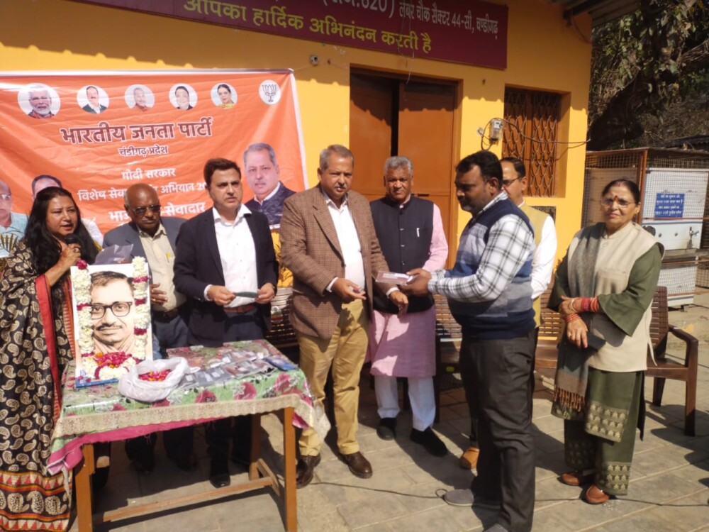 On the death anniversary of Pandit Deendayal Upadhyaya, BJP Chandigarh organized a special service programme at Labour Chowk, Sector 44. The programme was conducted under the leadership of Medical Cell Convenor Lalit Takiyar with the support of Construction Workers Labour Union President Ramlal Bairwa.