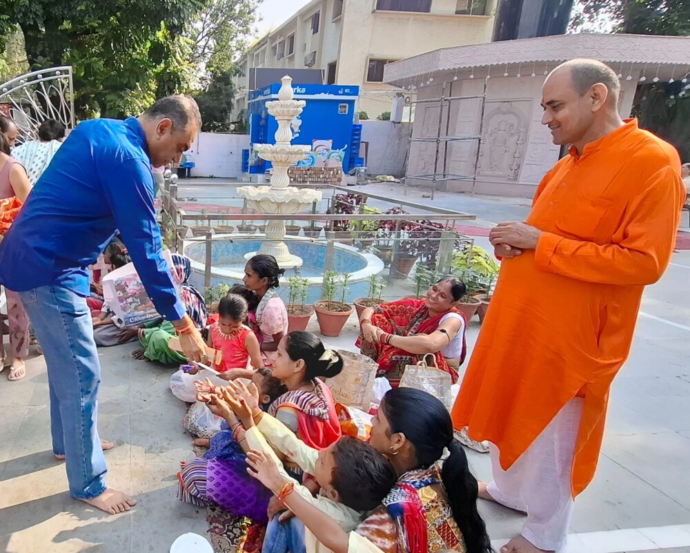 The temple echoed with chants from the Durga Saptashati and devotional songs, creating a divine ambiance. A large number of devotees joined the Tandon couple in chanting praises of the Goddess. After the ceremony, the temple committee organized a community meal ( bhandara) for all attendees, where people received prasad.