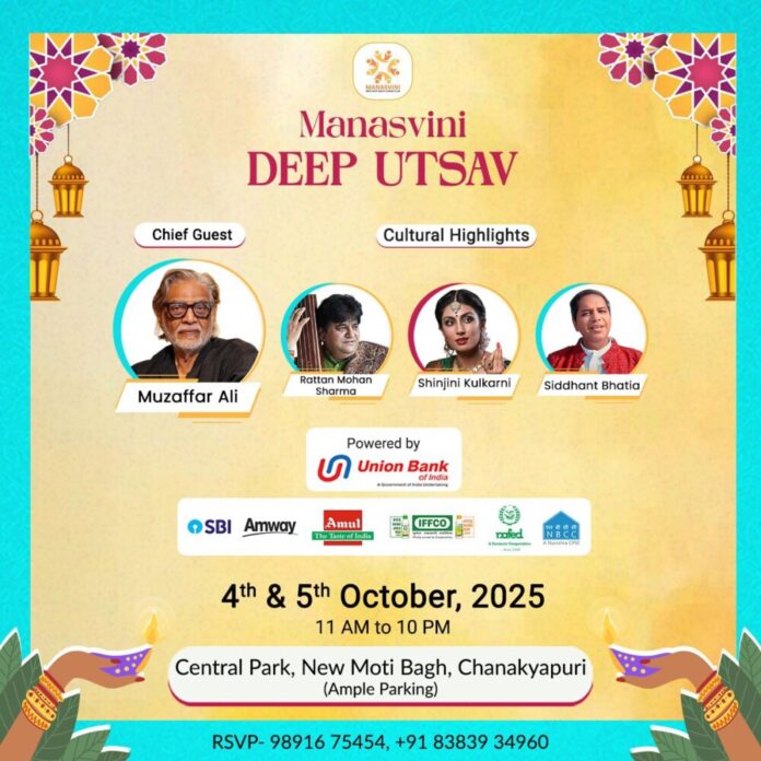A Diwali Mela is being organised by Manasvini, the ladies wing of New Moti Bagh Club on 4th and 5th October 2025 in New Delhi. Shri Muzaffar Ali, filmmaker, fashion designer, painter, poet, and social worker, will mark his presence as the Chief Guest. Cultural performances during the event will feature Shri Rattan Mohan Sharma, renowned Indian classical vocalist and disciple of Pandit Jasraj; Smt Shinjini Kulkarni, a distinguished Kathak dancer and granddaughter of Pandit Birju Maharaj; and Shri Sidhant Bhatia, Indian classical singer, composer, and music producer. The Ministry of Culture, Indo-Tibetan Border Police (ITBP) and Border Security Force (BSF) have been invited to participate in the event.