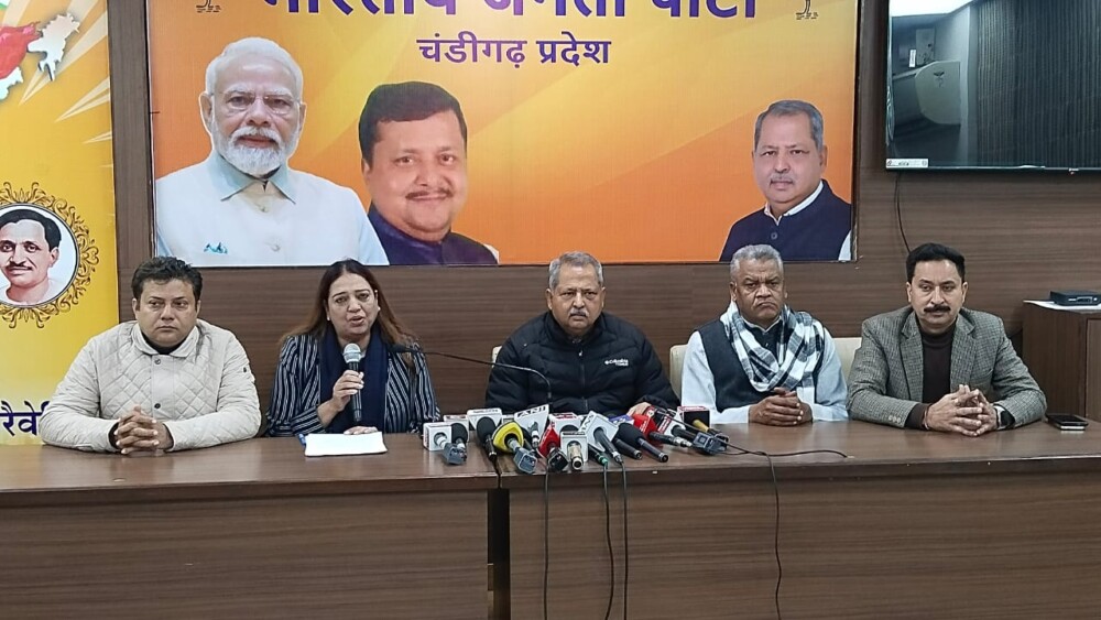 A press conference was organized by the Bharatiya Janata Party, Chandigarh Pradesh, at the Kamalam Party Office in the Presence of State President Jatinder Pal Malhotra. On this occasion, Chandigarh Mayor Harpreet Kaur Babla presented in detail the works, reforms, and achievements accomplished during her one-year tenure in the Municipal Corporation before the media.
