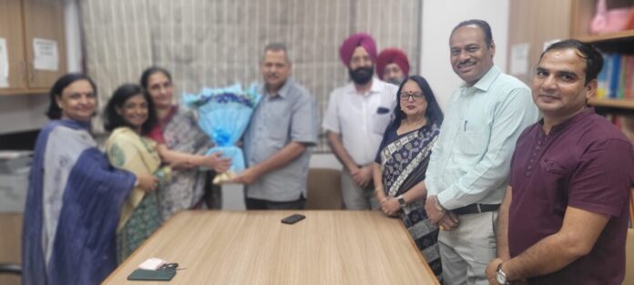 Today, a delegation of newly promoted principals, led by Dr. Dharmendra Shastri, President of the All India National Educational Federation (AINFE), met Jitendra Pal Malhotra, President of BJP Chandigarh. They presented him with a bouquet and expressed their gratitude, along with offering sweets.