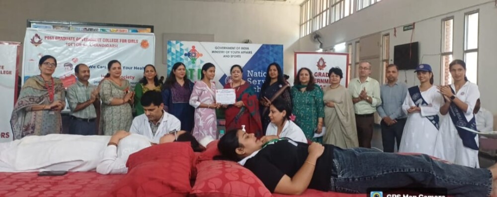Under the able guidance of Principal Prof. Dr. Anita Kaushal, Health Society and NSS Wing of Post Graduate Government College for Girls, Sector-42, Chandigarh, in collaboration with Government Multi-Specialty Hospital, Sector-16, Chandigarh today organised a Blood Donation Camp in the college campus.