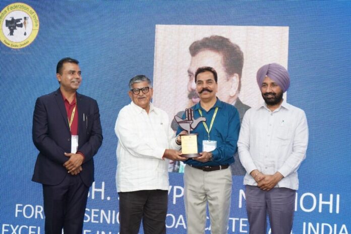 Chandigarh : Sarvpriya Nirmohi, a distinguished radio personality renowned for his extensive contribution in radio broadcasting,has been felicitated with the prestigious Award of Excellence in Radio Broadcasting and Anchoring by His Excellency Gulab Chand Kataria, the Honourable Governor of Punjab. The esteemed recognition was conferred during the 6th Entrepreneurs and Achievers Award ceremony, organized by the Media Federation of India (MFI) at PHD House, Sector 31, Chandigarh.