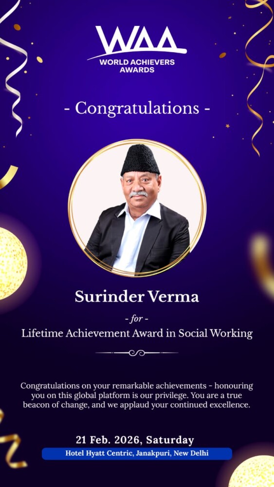 Inspired by family support, friends, senior officers, and like-minded organisations, Surinder Verma founded and registered the Citizens Awareness Group (CAG) on 28th December 1994. Under his leadership, the organisation undertook extensive work in public health and social development, addressing issues such as HIV/AIDS, leprosy, epilepsy, pulse polio immunisation, women and environmental welfare, female foeticide, Sarva Shiksha Abhiyan, domestic violence, along with organising blood donation and eye operation camps. His impactful work earned him multiple honours from Deputy Commissioners, Home Secretaries, Advisors to Governors, and Ministers of the Punjab and Haryana Governments.
