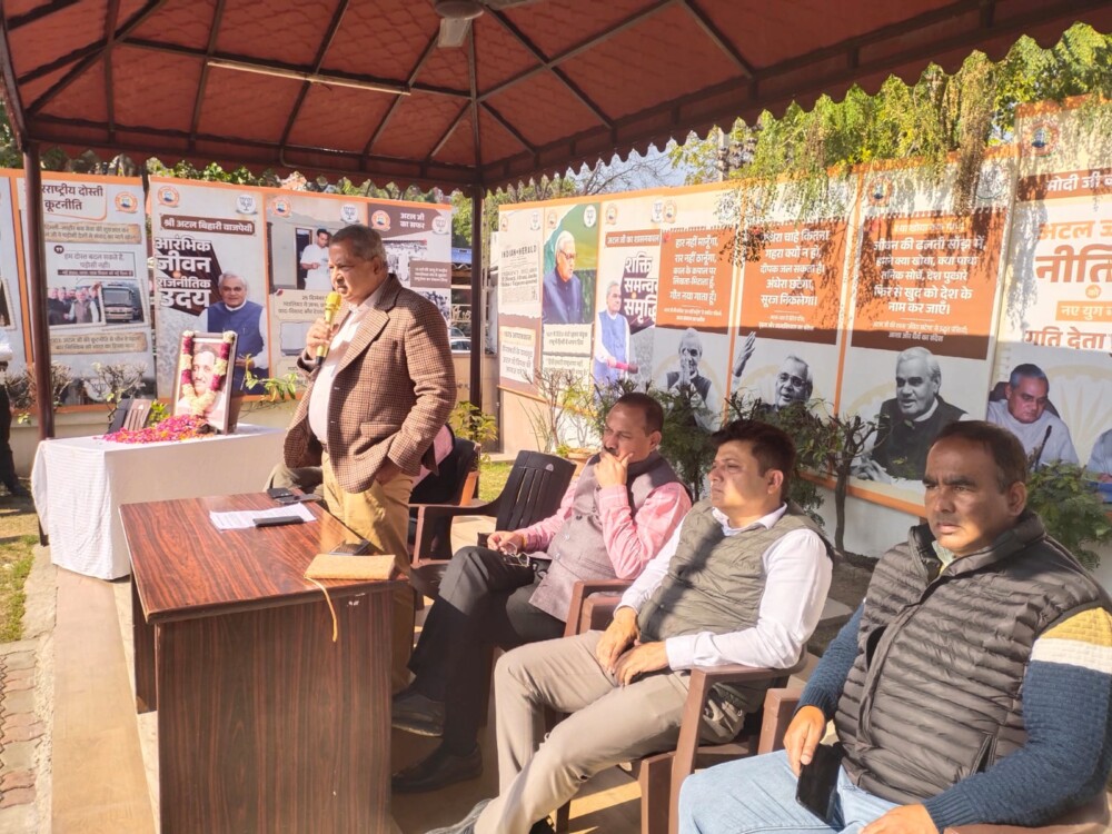 State President Jitendra Pal Malhotra said that Pandit Deendayal Upadhyaya gave ideological direction to Indian politics and strengthened the organizational foundation. His philosophy of Integral Humanism continues to guide nation-building efforts. He urged all party workers to imbibe his ideals in their lives and dedicate themselves to service, commitment and organizational strength. He stated that development remains incomplete until its benefits reach the last person in society.