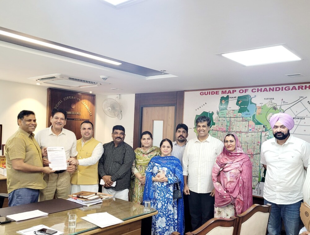 A delegation of the Aam Aadmi Party (AAP), under the leadership of President Vijaypal Singh, along with councillors Anju Katyal, Yogesh Dhingra, Manur, Suman, and (LoP) Jaswinder Kaur , General Secretary Omkar Singh Aulakh, and State Media Incharge Vikrant A Tanwar, and Harpreet Singh from manimajra today met the Municipal Commissioner to raise concerns over the non-issuance of new water connections to Manimajra residents.